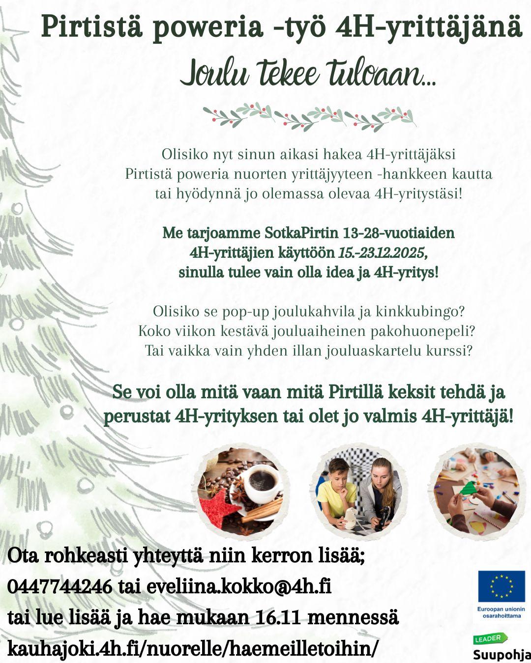 Tarjoamme Pirtin 4H-yrittäjien käyttöön 15.-23.12.2025 !